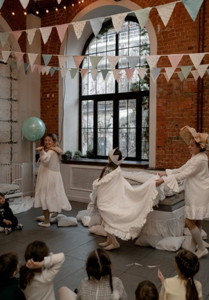 Нежный пастельный праздник для маленькой Евгении, которой исполнилось 7 лет. На празднике мы показывали спектакль «Принцесса на горошине» и решили сделать его тематикой праздника. Кстати, наша декоратор сама сшила матрасы для фотозоны, а еще флажки, сервировочные плейсметы и тематическую цифру из той же ткани. Начали праздник с весёлого квеста, а закончили выносом торта и шумной дискотекой!