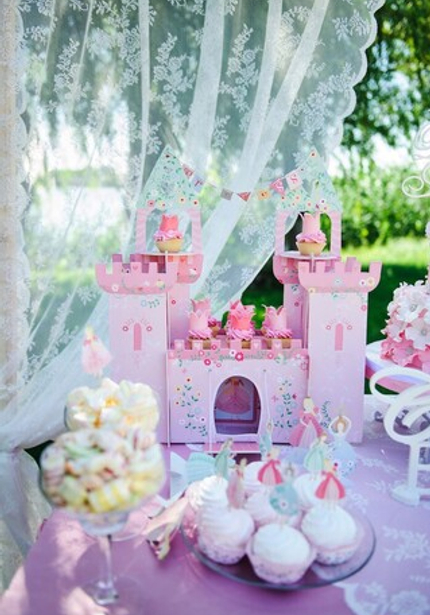 Коллекция «Принцессы» одна из самых любимых у девочек, посмотрите хотя бы на центральную композицию в виде замка, на которую можно ставить капкейки. Все такое нежное, розовое, ажурное – любая принцесса растает при виде такой красоты! Тортик отлично вписался в атмосферу с его нежными цветочками и жемчужинками, а букетик из живых цветов дарил приятный аромат маленьким гостьям. Для нас самое большое удовольствие смотреть, какую красоту люди создают, используя декор Meri Meri за основу!