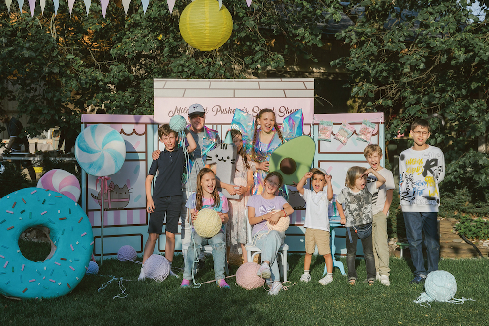 Эта именинница постоянно просит на день рождения одну и ту же тематику — с кошечкой Пушин! Мила настолько её любит, что с каждого праздника собирает тематические цифры в свою коллекцию, а в этом году даже сама придумала дизайн! Вместо 0 у нас в числе 10 авокадо. Но, несмотря на одну и ту же тематику, мы каждый раз придумываем что-то новое и находим свежие идеи, цветовую гамму и анимационную программу.