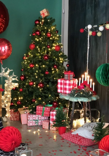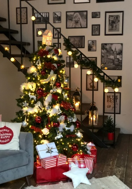 Для тех, кому не хватает цвета в жизни, мы сочинили это сочное оформление в праздничном красном цвете. Торжественнее некуда, а как здорово смотрится зелёная ёлочка с такими украшениями!