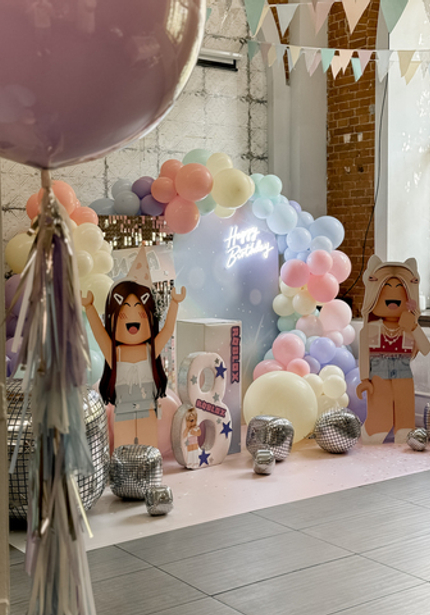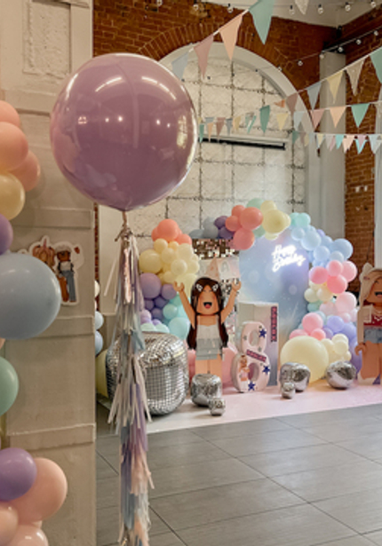Сделали потрясающий праздник для девочки, которая обожает игру Roblox! Мы выбрали нежную пастельную гамму и серебряные акценты для большего стиля. В декоре были фигурки персонажей из игры — в композиции на столе и две большие девочки в фотозоне. Именинница и гости были в восторге от такого крутого дня рождения — ведь это был не просто красивый декор, но и точное попадание в интересы детей. А ещё всем понравилась развлекательная программа, особенно треш-бокс с разными животными, которые очень обрадовали детей.