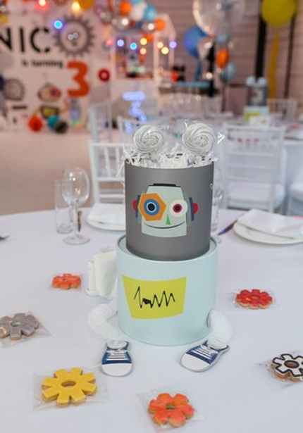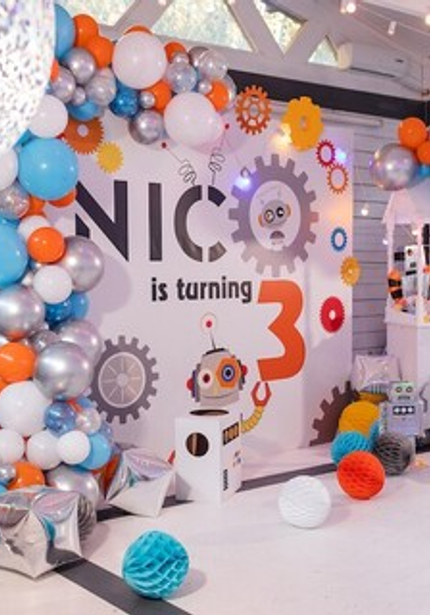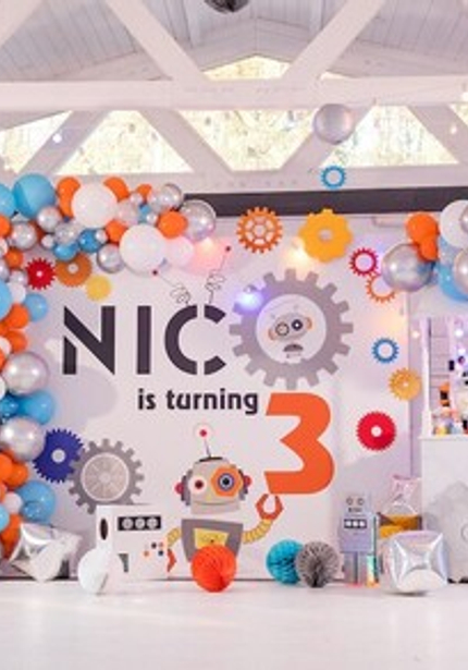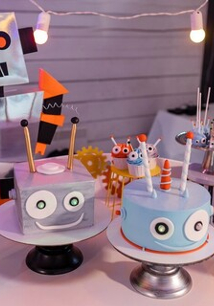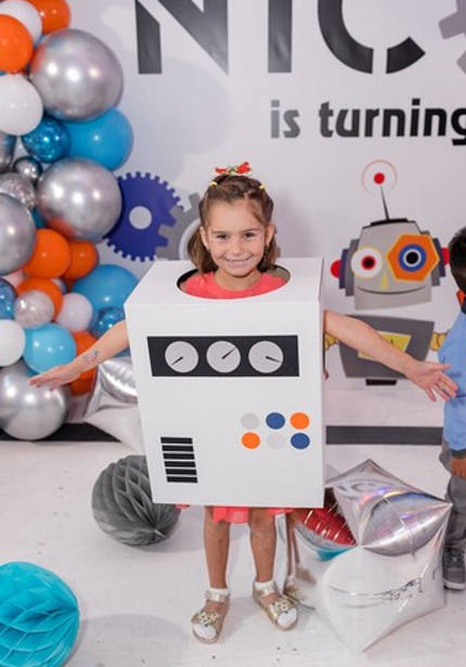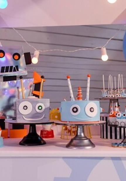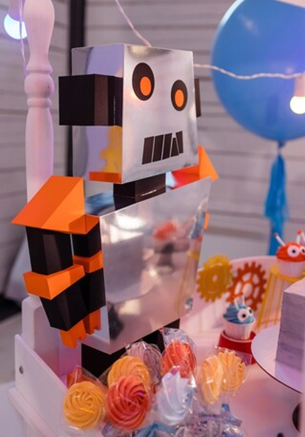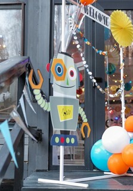 Праздник с роботами прекрасен тем, что его можно оформить в любой гамме — а это бесконечное поле для творчества! Главное, чтобы было множество серебряных деталей, блестящих, как металлический корпус робота. А еще на таких вечеринках весело и мальчикам, и девочкам, потому что роботы нравятся всем! Главное, не останавливаться на одном только декоре, а еще придумать увлекательную программу с играми и конкурсами.