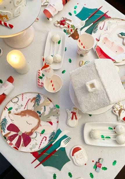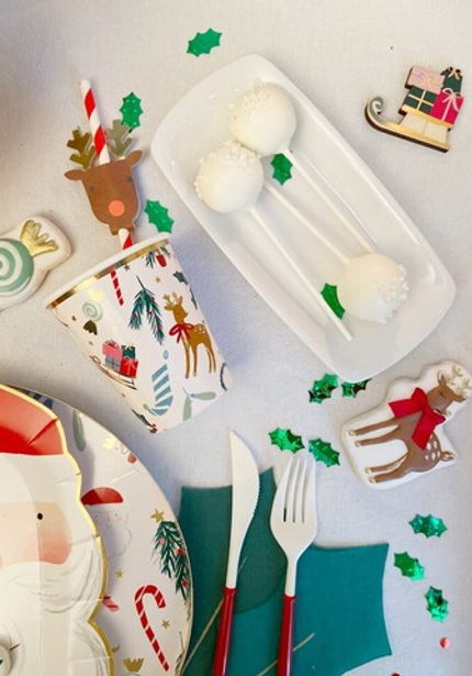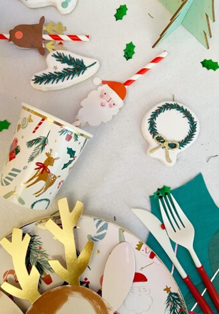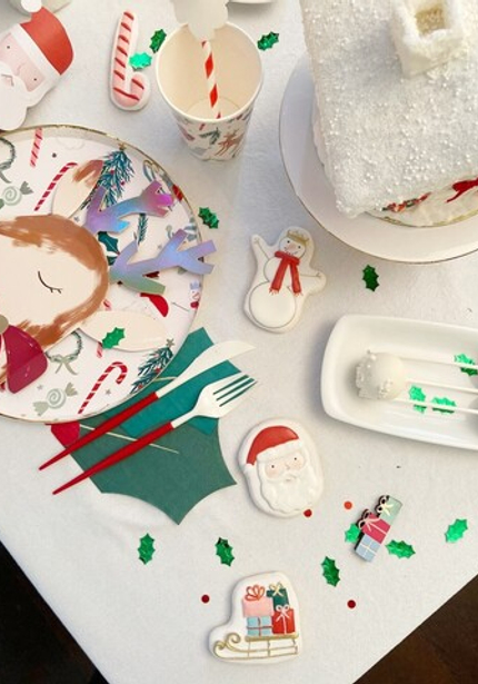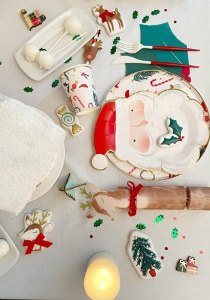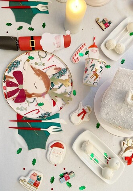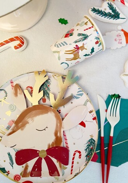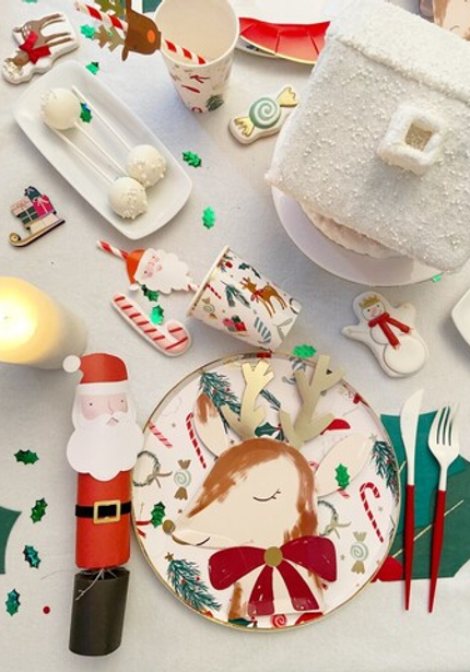 Новый год в классической красно-зеленой гамме — вот что обязательно подарит вам ощущение праздника и уюта! А в новогодней коллекции Мери Мери есть множество мелочей, которые вместе превращаются в восхитительное оформление. Для начала расставьте посуду (не забудьте этих очаровательных оленят с золотыми рожками!), возле каждой тарелочки положите хлопушку, неприменный атрибут этого праздника. Стол посыпьте конфетти, над ним развесьте шарики и добавьте самый сладкий штрих — тематическое печенье.