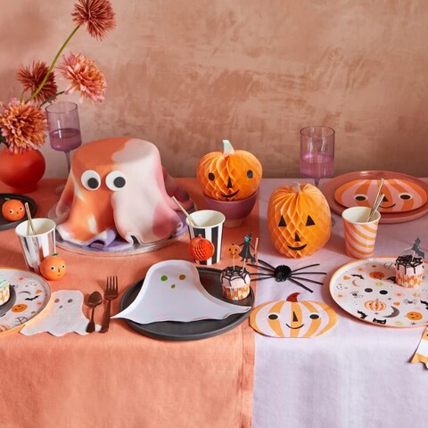 Розовые привидения помогут оформить нежный пастельный Хэллоуин! Используйте эти тарелочки в сервировке стола и сочетайте с такими же салфетками.