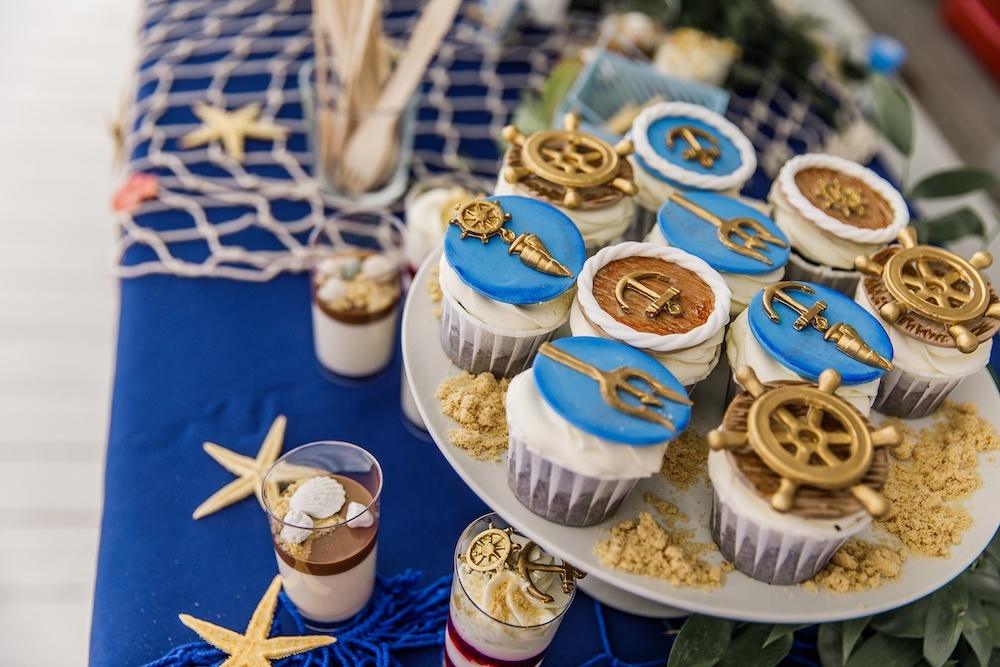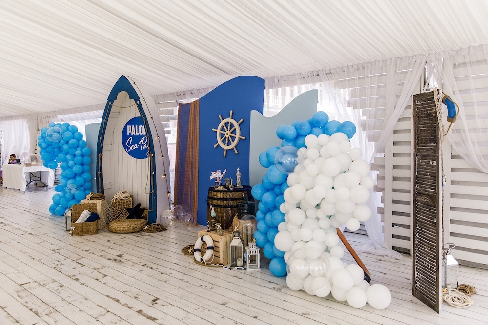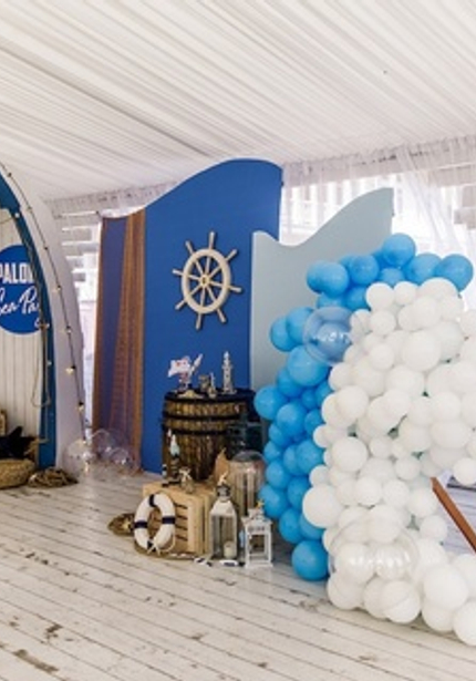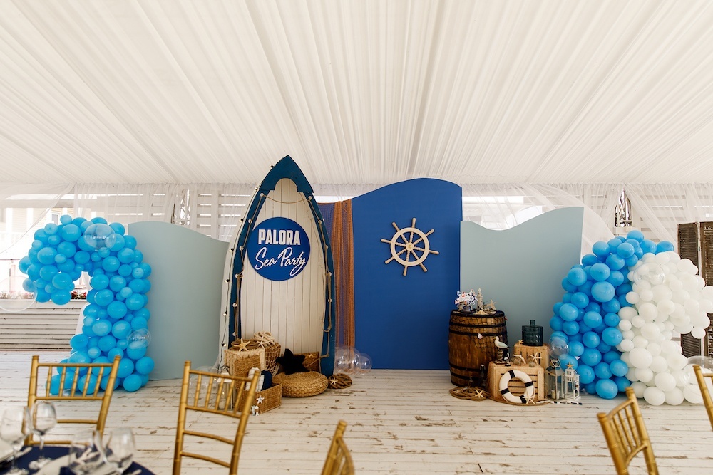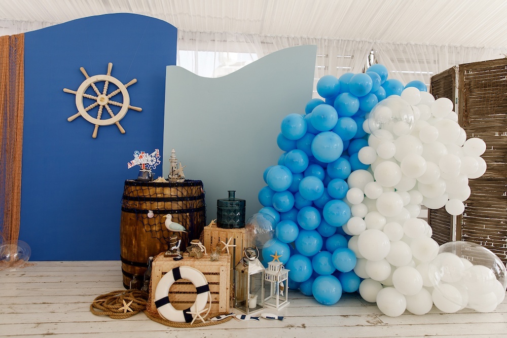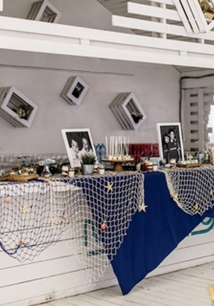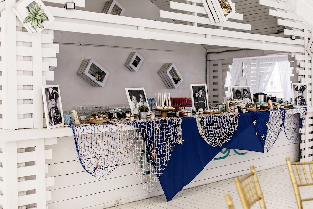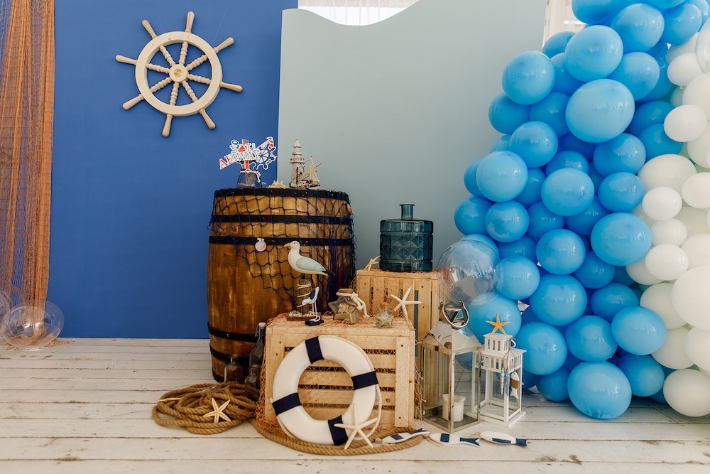 Оформлять дни рождения для взрослых так же интересно, как и для детей! Конечно, мы выбираем более сдержанные гаммы, но не стесняемся использовать много декора. Нашими именинниками стали два брата, которым исполнилось 33 года. Мы выбрали морскую тематку, украсили столы ракушками, канатами и корабликами, а еще организовали стильную фотозону для тематических фото на память.