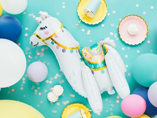 Очаровательная лама с золотой сбруей дополнит вашу фиесту! Она прекрасно сочетается с пастельной посудой и пастельными гирляндами и шарами.
