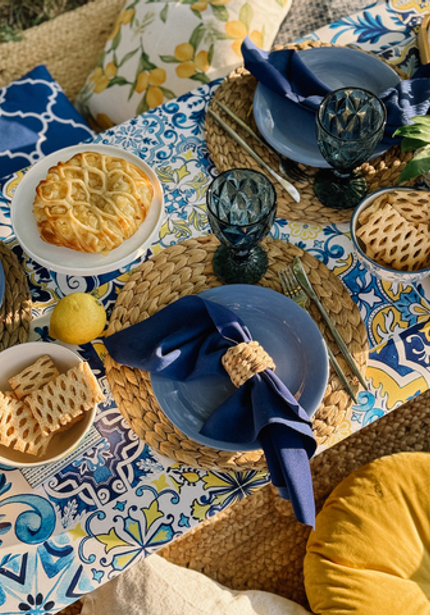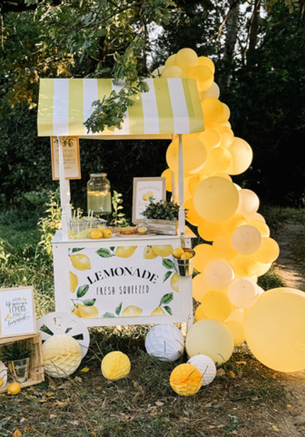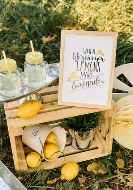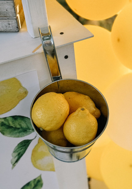 Обожаем лимонный декор — солнце, тёплый ветер, итальянская атмосфера! Вот такую красоту создала наш декоратор Женя. Сочетание жёлтого цвета и синей майолики прекрасно смотрится! Она оформила обеденный стол с подушками, украшенный гирляндой с лимончиками, а также фотозону с функцией стойки с напитками.