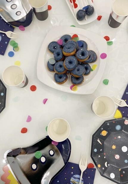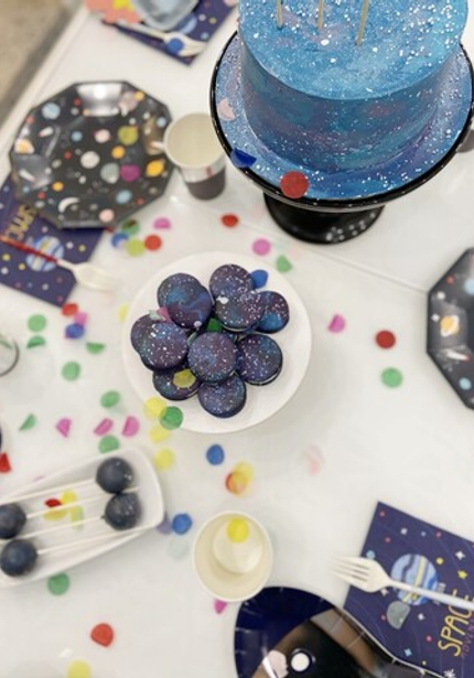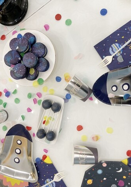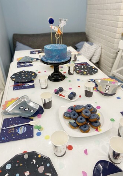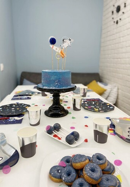 Если вдруг вы думали, что стильные вечеринки можно устраивать только в лофтах и студиях, то вот отличный пример, как отпраздновать дома и красиво! Вам нужно лишь выбрать понравившуюся коллекцию — наш именинник захотел космос. Украсьте пространство, накройте настол и добавьте тематические угощения от талантливых кондитеров. Готово! Можно делать памятные фотографии!
