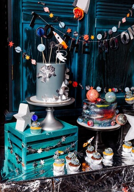 Невероятное космическое путешествие, среди ярких звезд, с вкусными угощениями и веселыми играми — все, что нужно любому юному астронавту. Над этим великолепным праздником потрудилась целая команда, а основа декора – коллекция «Космос». Декораторы показали, что значит обилие воздушных шаров – они были везде и их было очень много! Особенно здорово смотрится фольгированная ракета их коллекции.