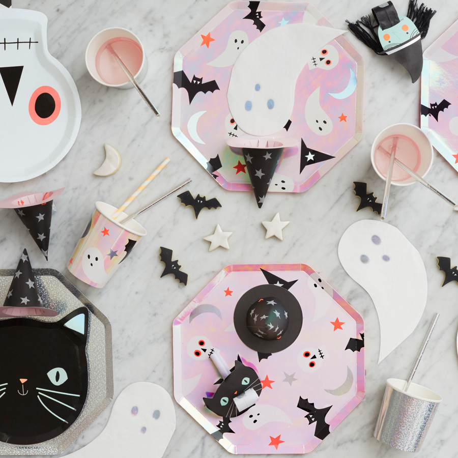 Сделать хэллоуинские капкейки легко! Просто украсьте их с набором топперов, сочетающимся с посудой из коллекции.