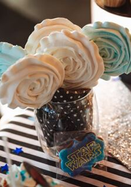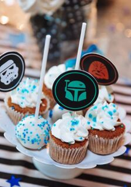 Очень жаль было есть такой красивый тортик, но устоять перед такой вкуснятиной очень сложно! Наш чудо-кондитер приготовила тематические печеньки и «звездные» кейк-попсы, а еще множество капкейков с воздушным кремом. Угощайтесь, и да пребудет с вами сила!