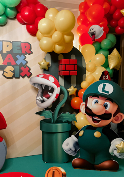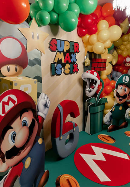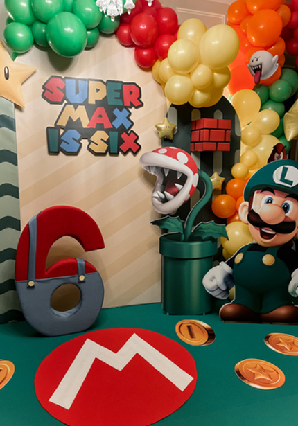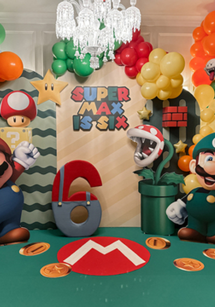Как подарить ребёнку море эмоций и один незабываемый день? Оформить день рождения его любимыми персонажами! Представьте себе лицо ребёнка, когда он входит в комнату и видит, что всё украшено персонажами Марио, от которых он просто без ума! Вот так и прошло 6-летие Макса, для которого мы создали этот яркий праздник с десятками шаров, огромными фигурами героев, тематической цифрой и другим невероятным декором.