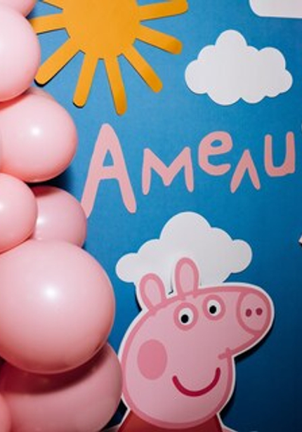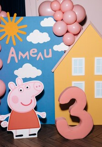 Мы очень хотели порадовать нашу юную именинницу! Она обожает Свинку Пеппу, поэтому на празднике её ждала невероятная фотозона с домиком свинки! А на столе мы разложили милую детскую коллекцию Meri Meri, которая идеально подошла по гамме.