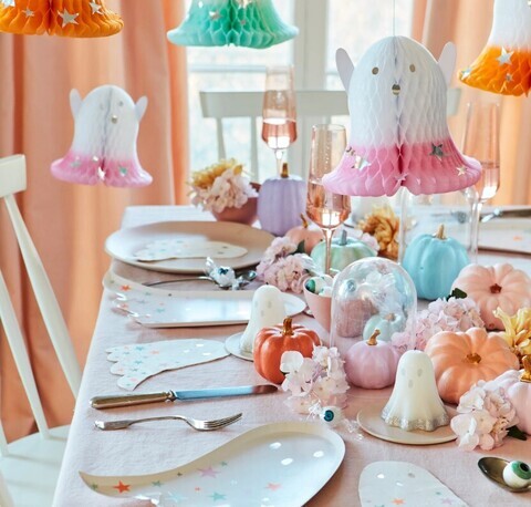 Привидения в расцветке омбре помогут оформить нежный пастельный Хэллоуин! Используйте эти тарелочки в сервировке стола и сочетайте с такими же салфетками.