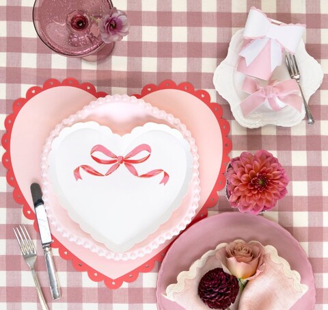 Тарелки "Сердечки с бантиками" 8 шт. (24 х 21,5 см)