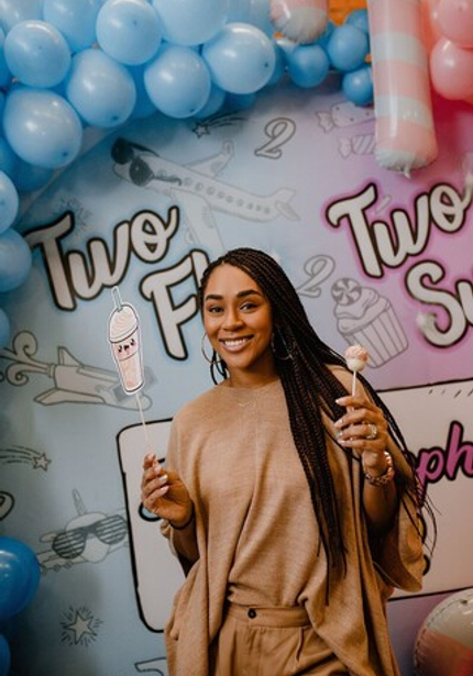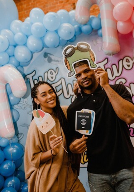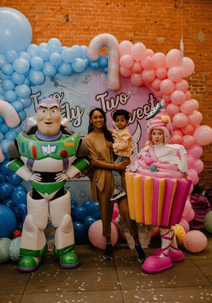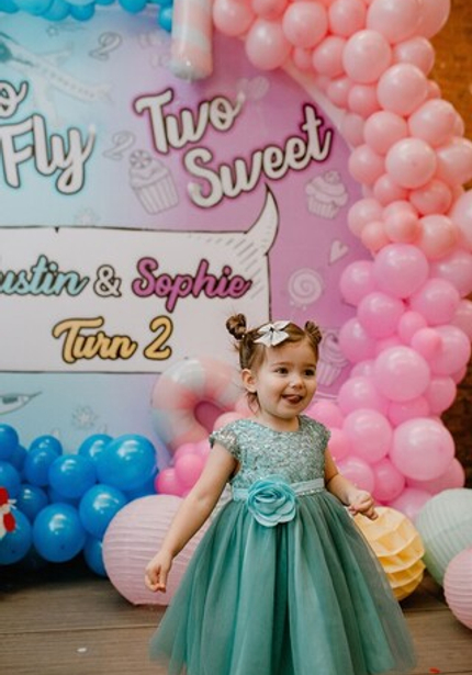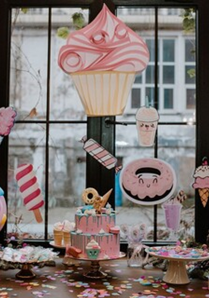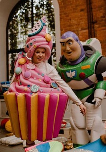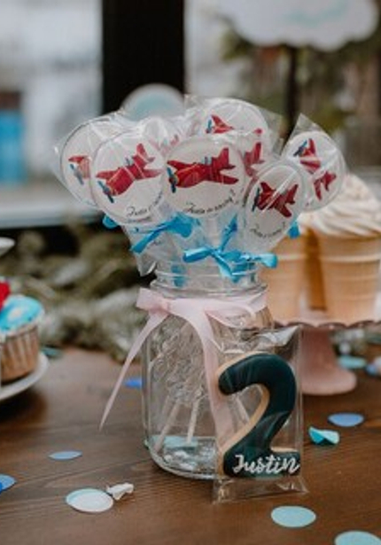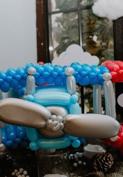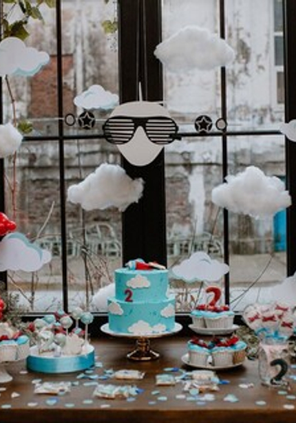 Смелое дизайнерское решение: праздник для мальчика и девочки вместе! Зону для девочки оформили в стиле сладостей, а для мальчика – самолетами и облаками. Получилось очень стильно и весело! Ведь, несмотря на разделение на тематические зоны, развлекательная программа была общей для обоих именинников!