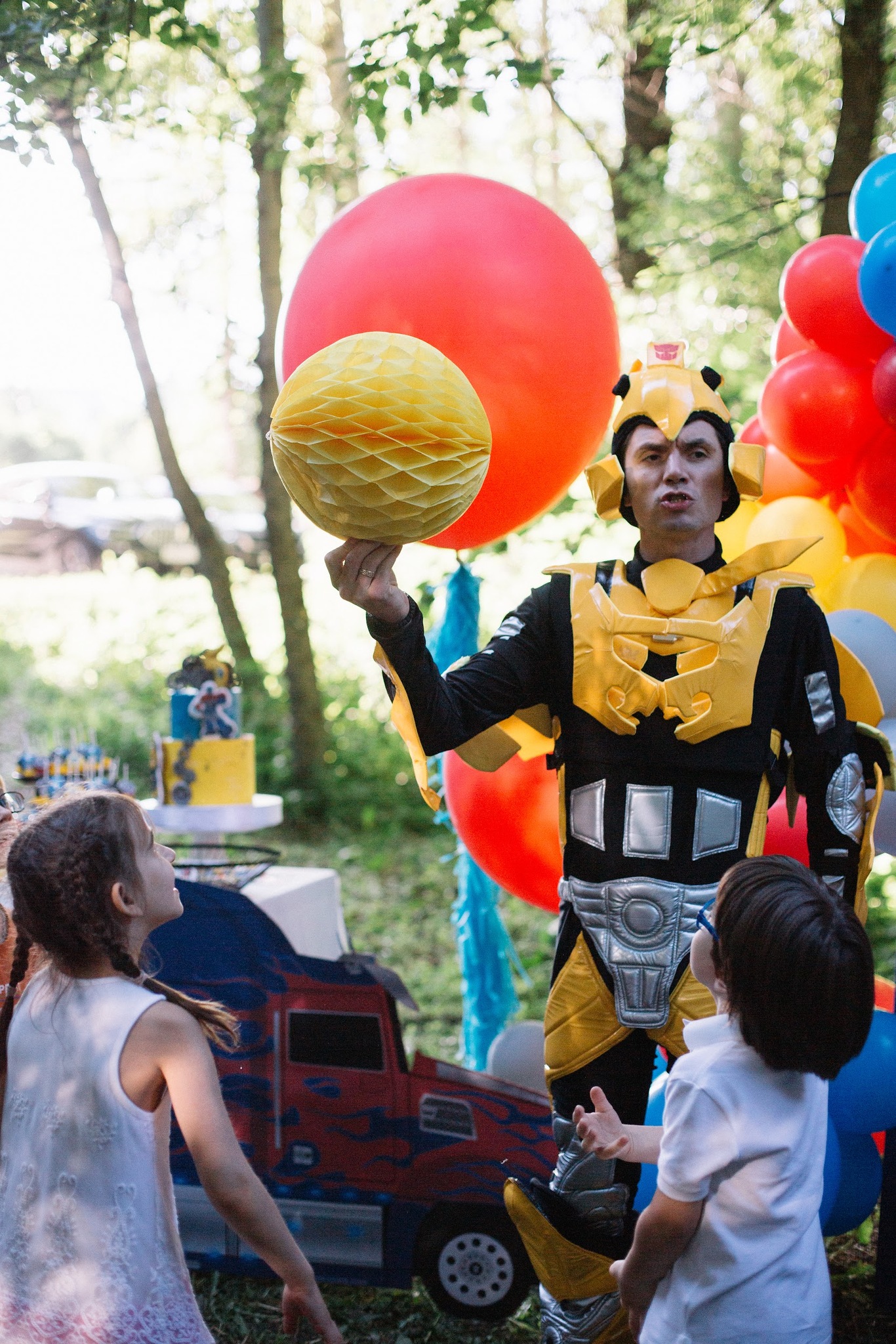 Если ваш сын обожает трансформеров, то у нас для вас отличная новость — у нас и аниматоры есть, и тематический декор, а еще мы всегда можем приготовить угощения в любой тематике! Так и наш именинник получил праздник мечты — яркий, веселый и с любимыми героями в гостях.
