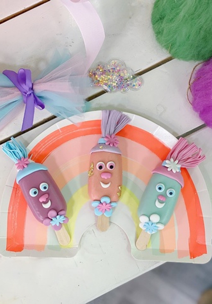 Мы решили использовать нашу радужную коллекцию в совершенно неожиданном воплощении! Яркие разноцветные тролли, в стиле которых был наш день рождения, идеально сочетаются с радужной посудой и украшениями. Посмотрите, какая нежная, но яркая красота получилась!