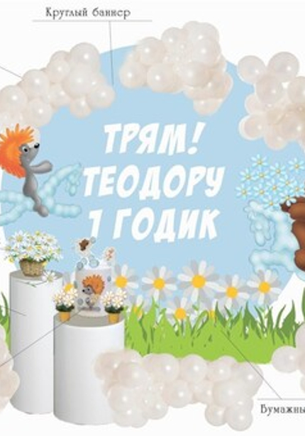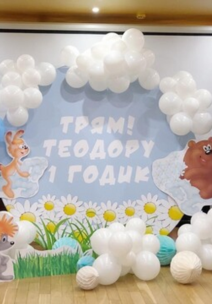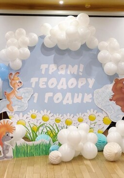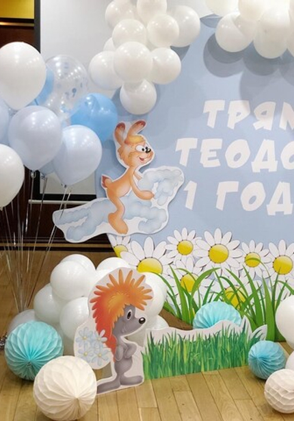 Вот такие необычные тематики у нас бывают! Женя оформляла фотозону на годвасии Теодора в стиле советского мультфильма “Трям! Здравствуйте!” Может быть, у вас теперь тоже родилась креативная идея для вашего дня рождения?