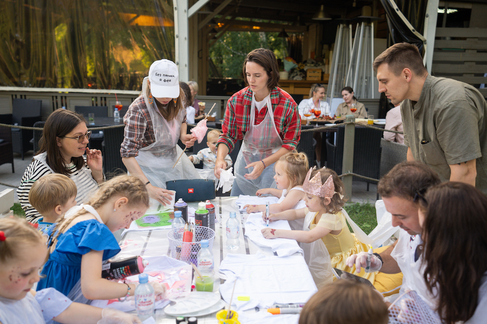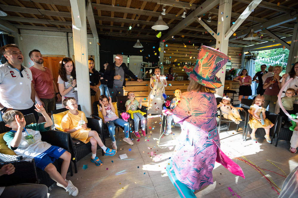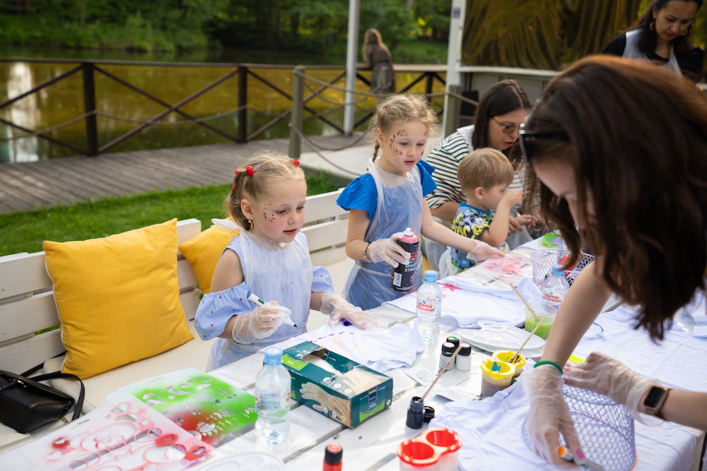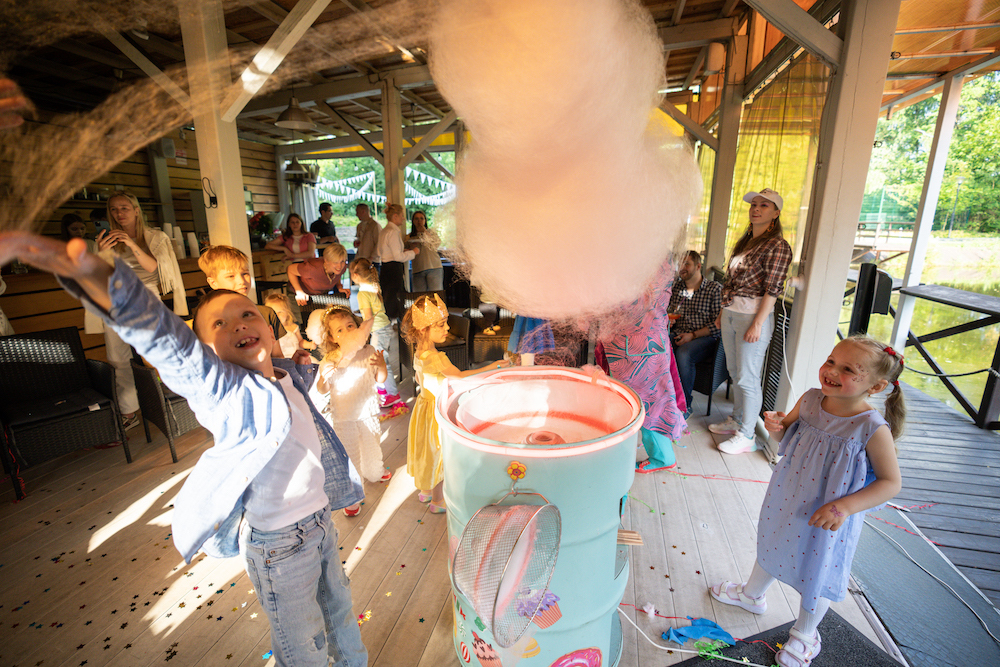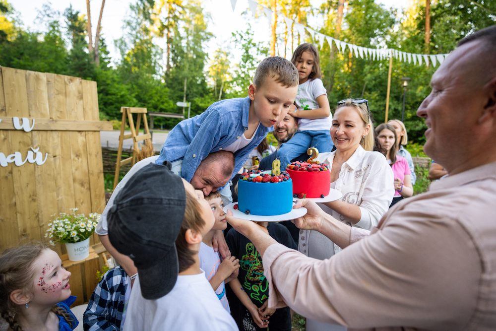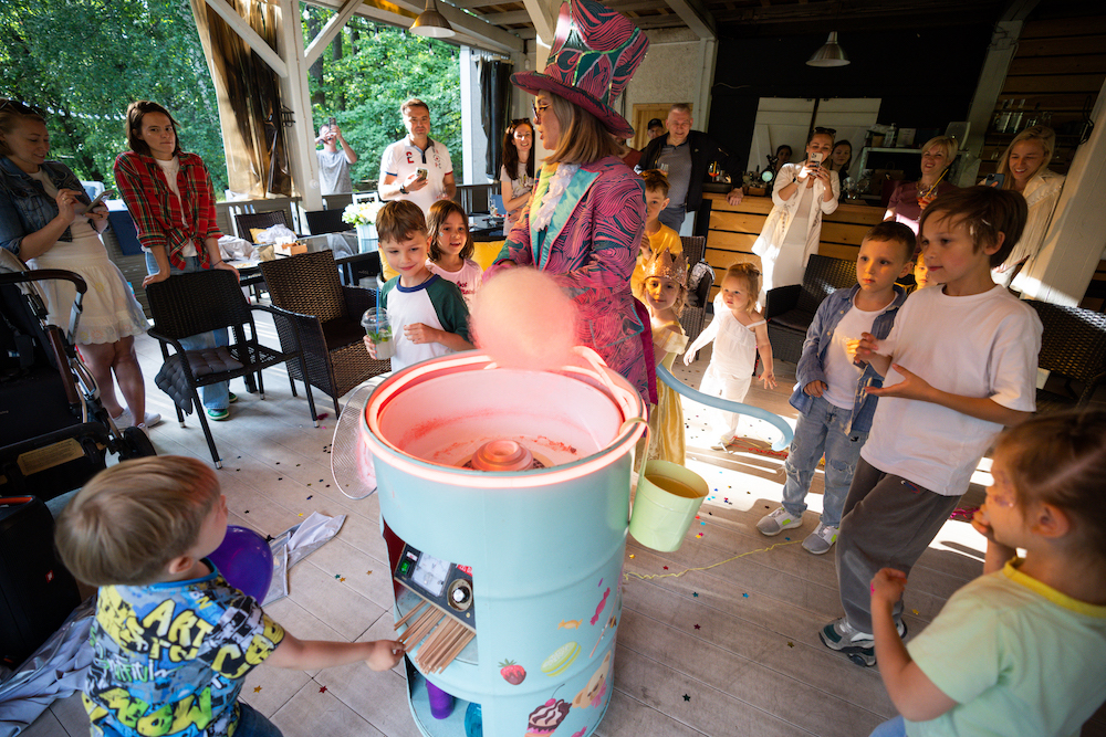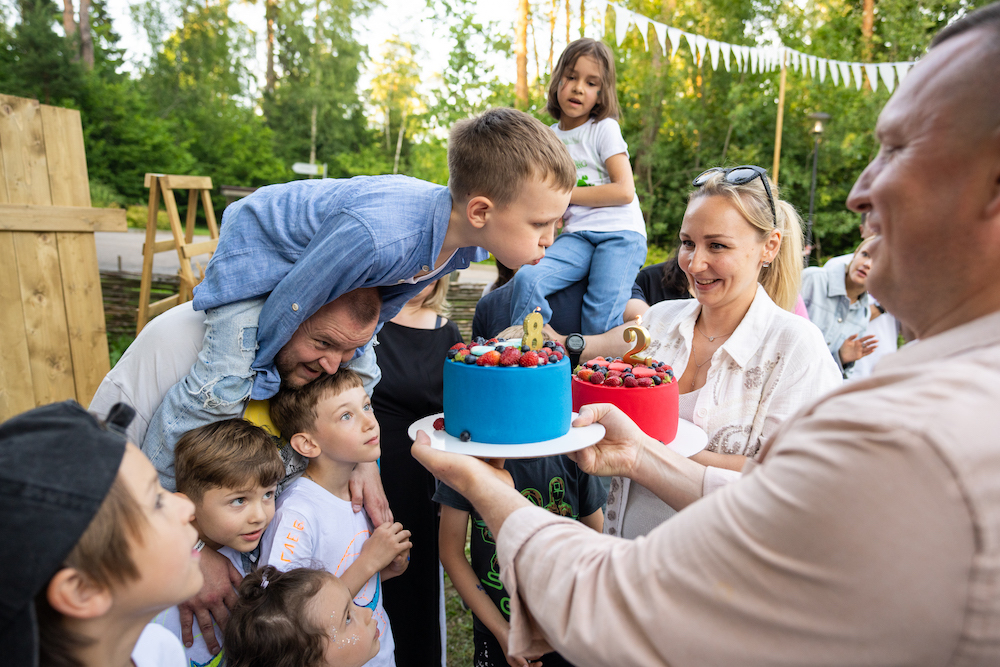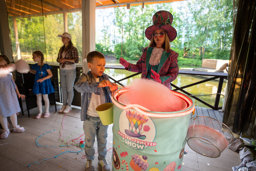 Этот день рождения проходил в кафе на берегу озера, так что мы решили сделать такой декор, чтобы он вписался и в природу, и в стилистику локации. Это был двойной день рождения для мальчика и девочки, так что мы выбрали нейтральную тематику — просто нежные природные мотивы! Была очень насыщенная анимационная программа — от игр до творческих поделок, так что все дети нашли занятие себе по душе.