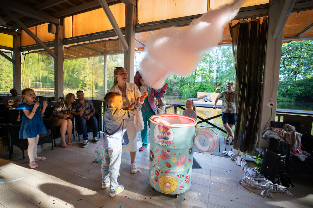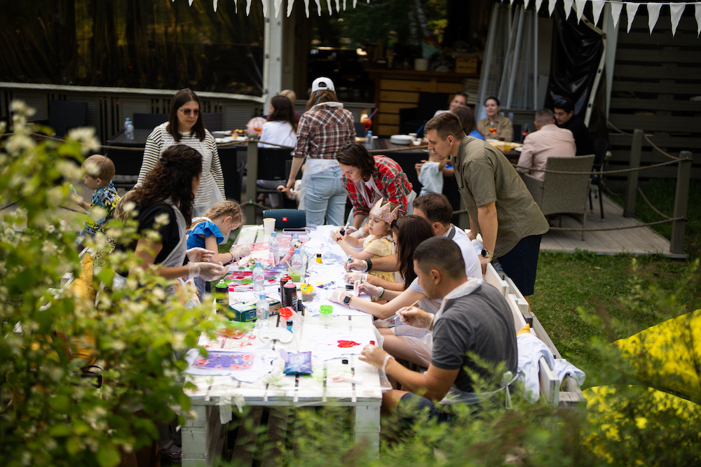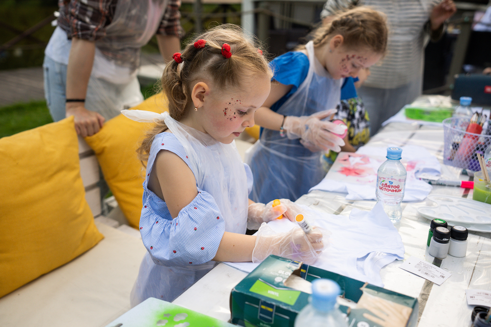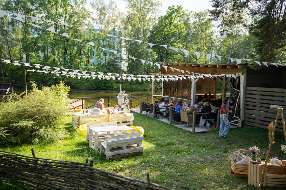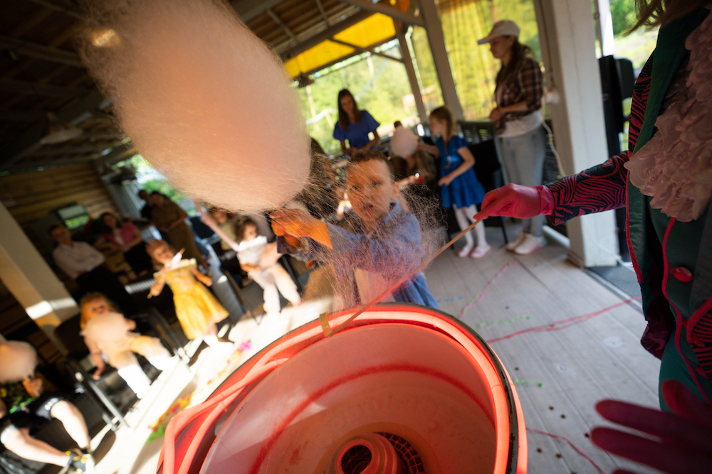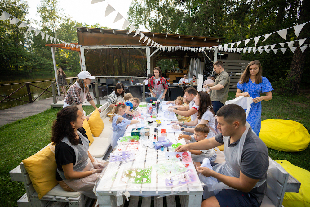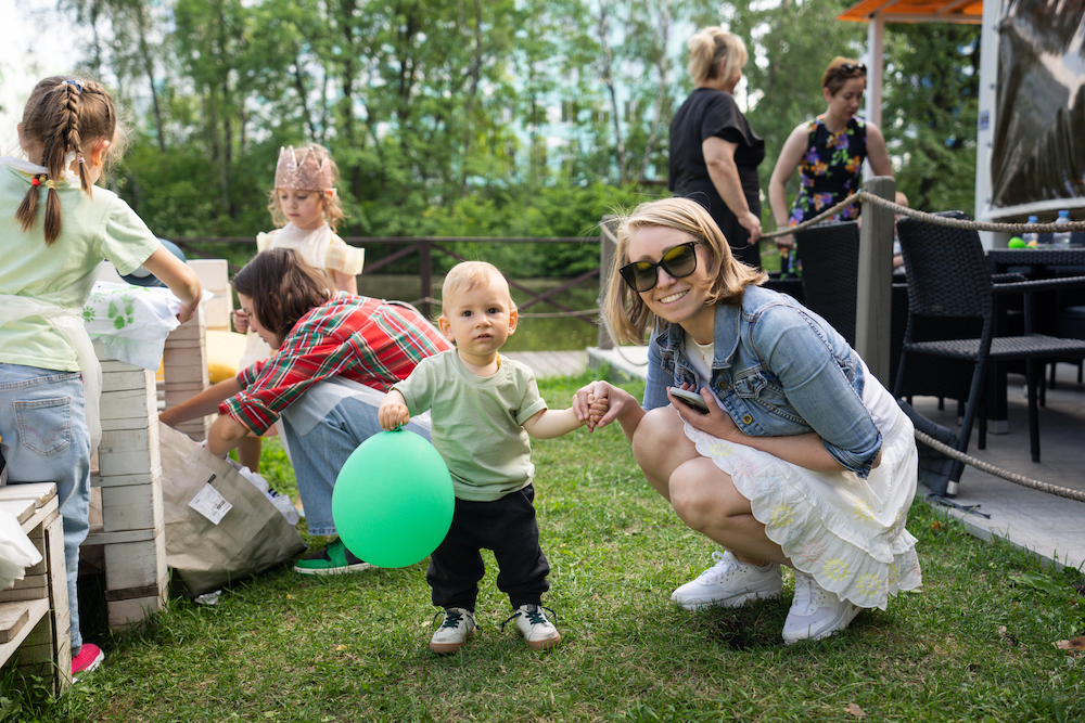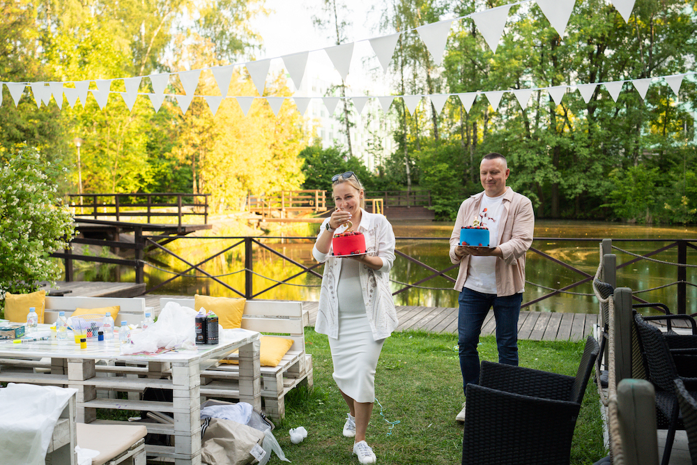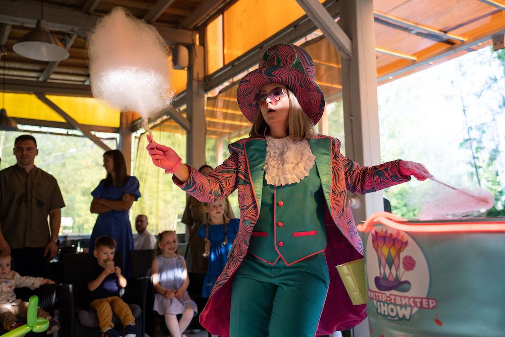 Этот день рождения проходил в кафе на берегу озера, так что мы решили сделать такой декор, чтобы он вписался и в природу, и в стилистику локации. Это был двойной день рождения для мальчика и девочки, так что мы выбрали нейтральную тематику — просто нежные природные мотивы! Была очень насыщенная анимационная программа — от игр до творческих поделок, так что все дети нашли занятие себе по душе.