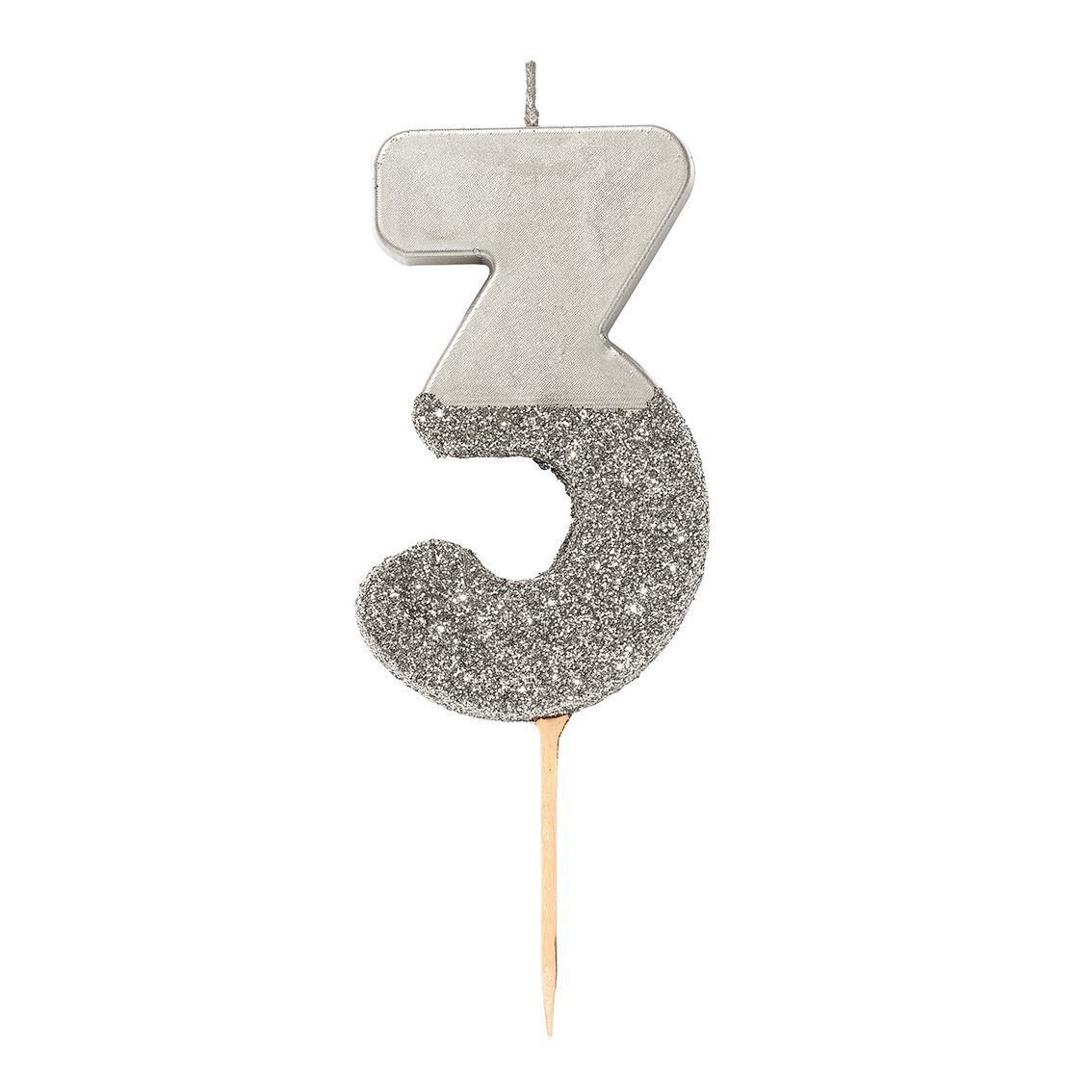 Стильные свечи-циферки с серебряным глиттером. Можно выбрать в голубом, золотом или розовом цвете.