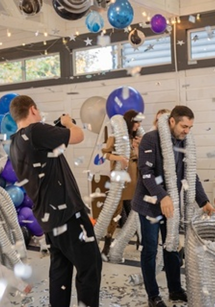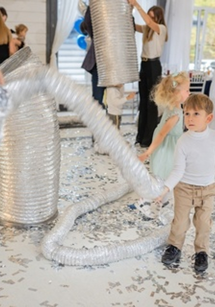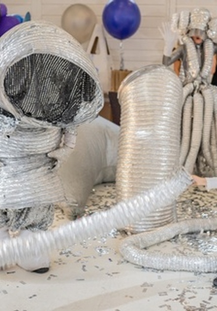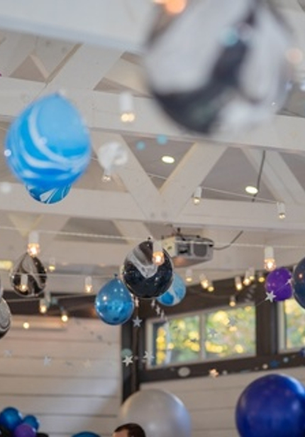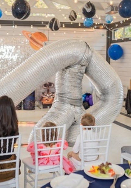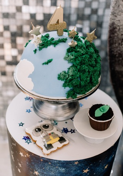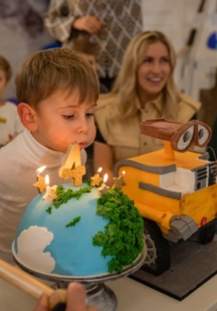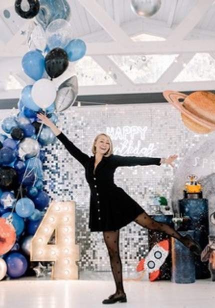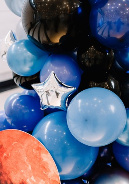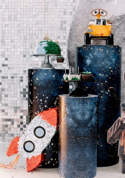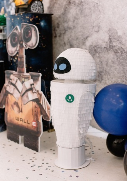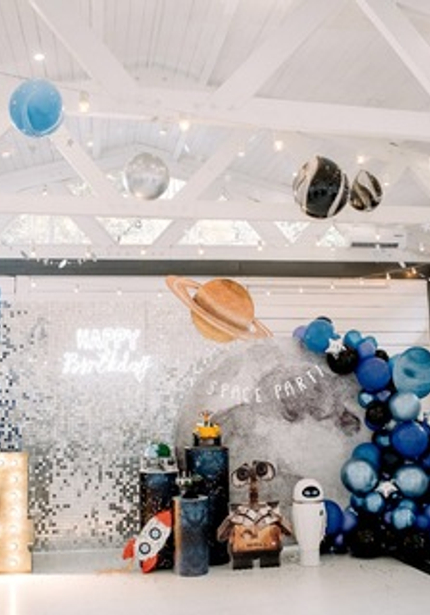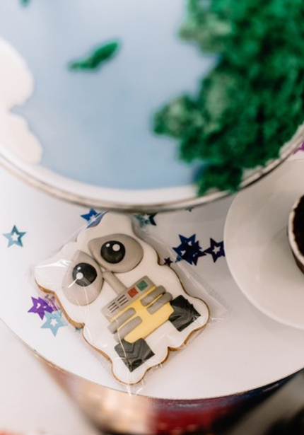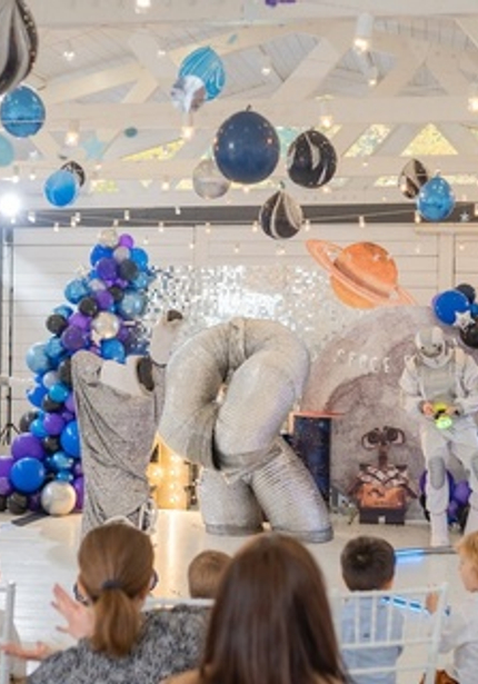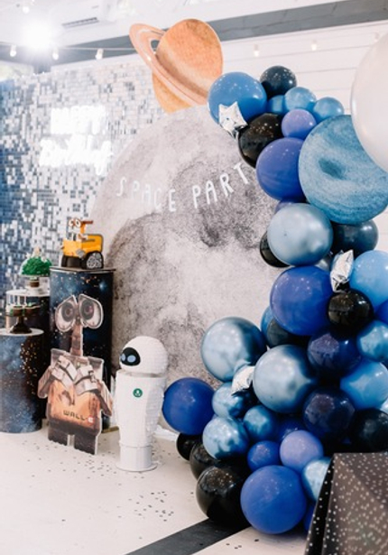 Космические вечеринки — наш конек! Мы оформили уже десятки праздников на эту тематику, и каждый новый отличался от предыдущего. Этот день рождения мы украсили декором в сине-серебрянной гамме, добавив главных героев праздника — Валл-и и Еву!