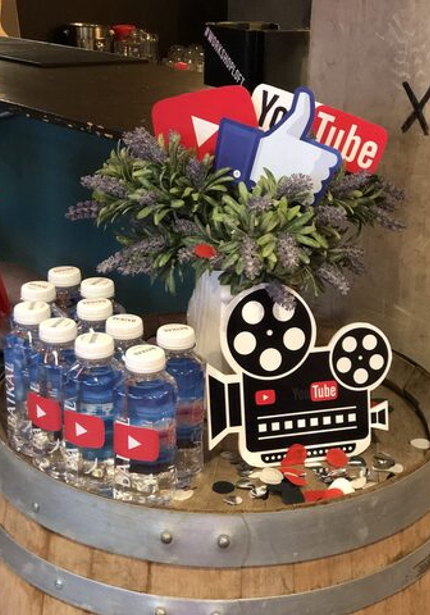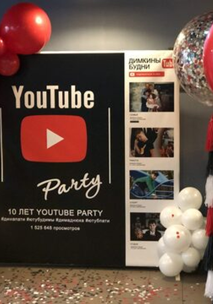 Даже для такой необычной тематики, как увлечение Ютубом, можно придумать классную вечеринку! Наша Женя оформила стильную фотозону с крутым задником и стол в подходящих красных тонах. Как вам идея?