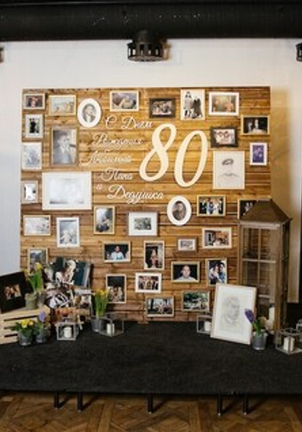 Если вы еще не видели наши взрослые праздники, то да, их мы тоже оформляем! Неважно, 8 лет или 80, мы обязательно придумаем стильный декор для любого повода. Например, для нашего юбиляра была оформлена потрясающая фотозона с фотографиями из всей его жизни! Начиная от юных лет, заканчивая совсем недавними фото уже в кругу семьи.