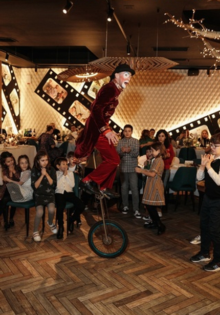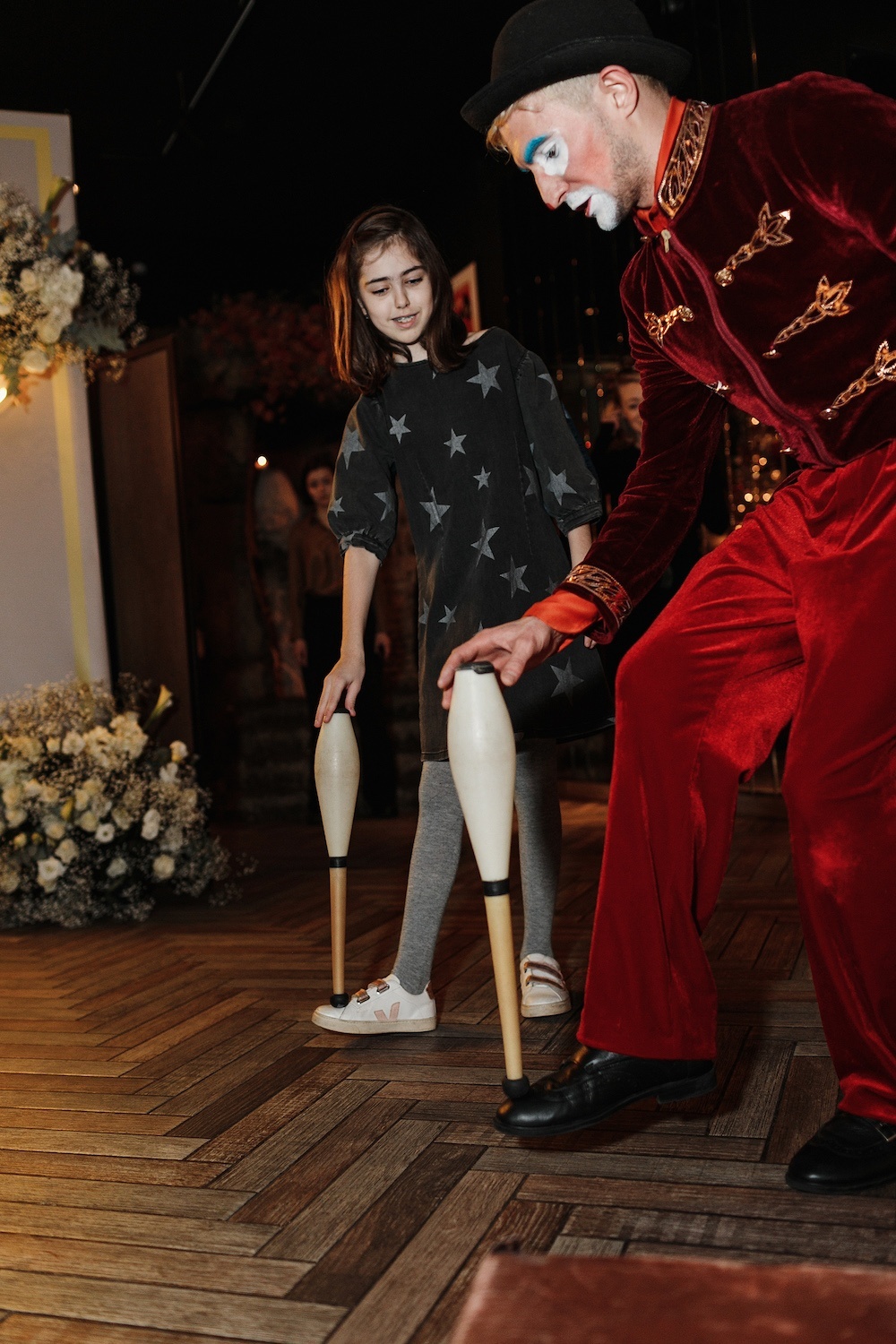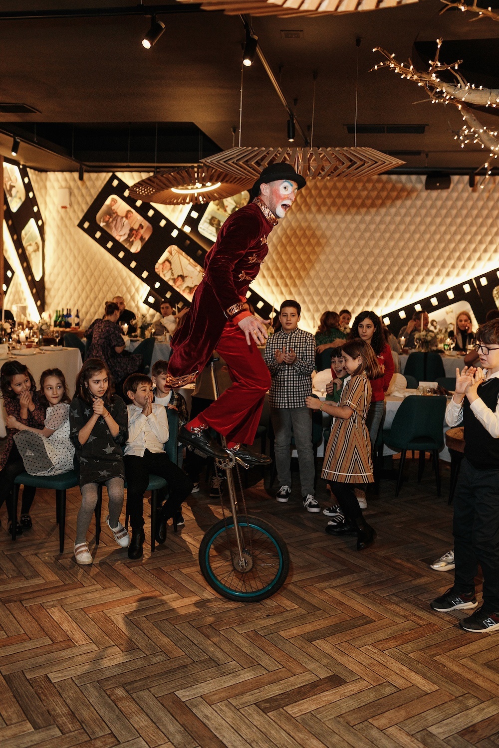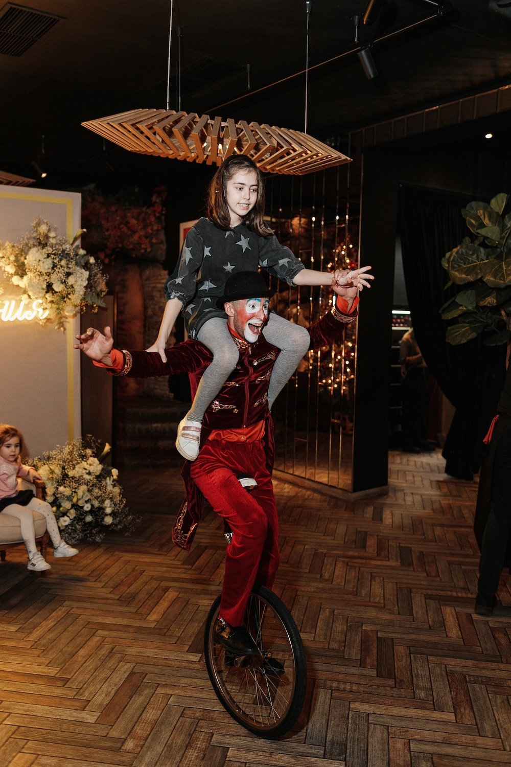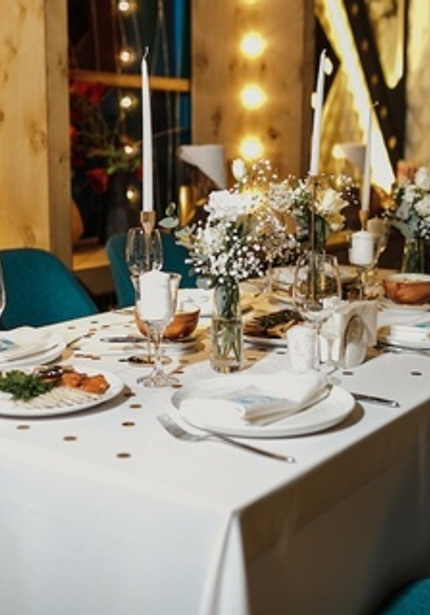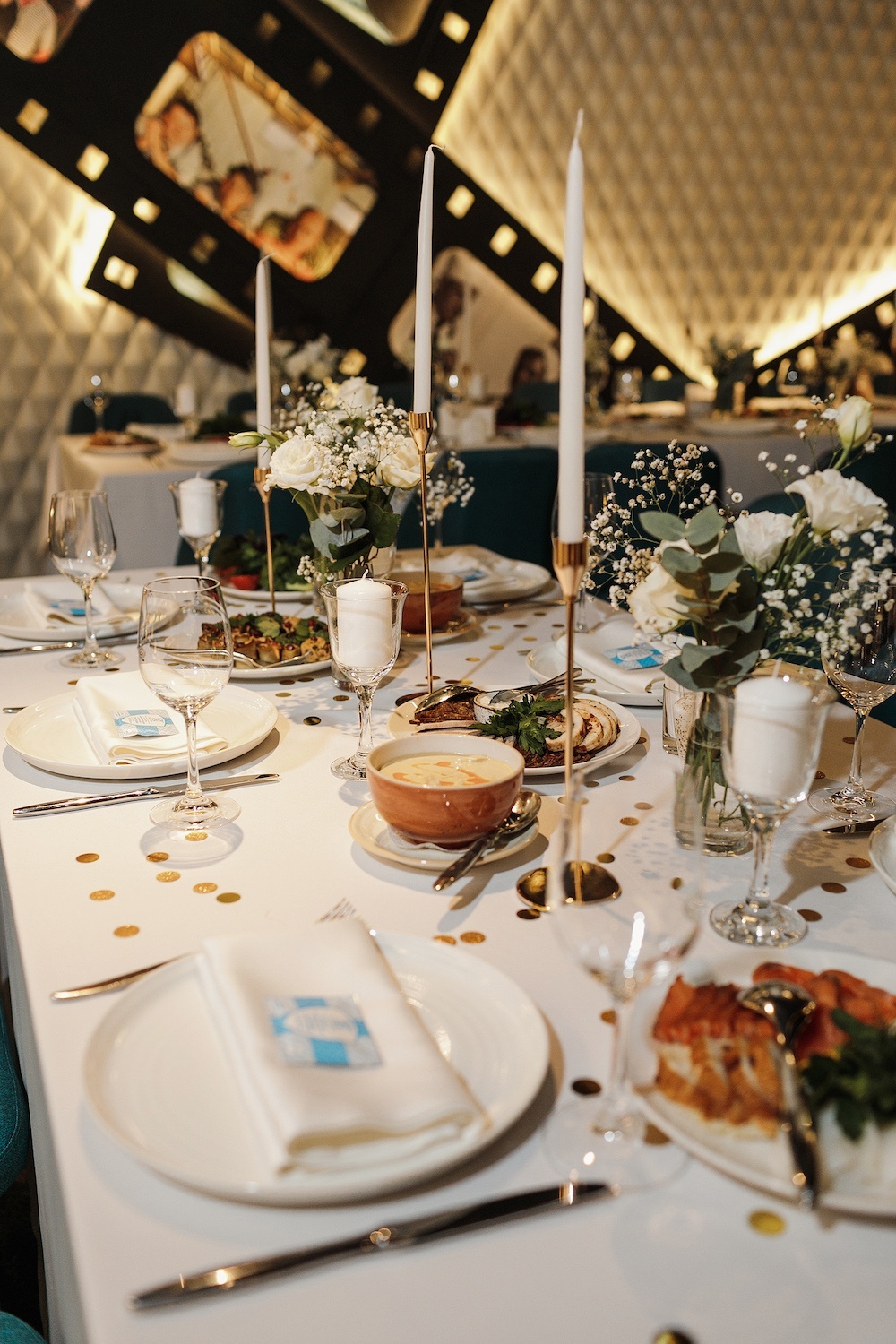 Мы подстраиваемся под любую площадку — например, этот праздник мы оформляли в ресторане Кавказская пленница. Мы сделали красивую фотозону на входе: с креслом, неоновой вывеской и букетами белых цветов. В зале мы занялись красивой сервировкой и анимационной программой для детей, чтобы взрослые могли спокойно отдохнуть.