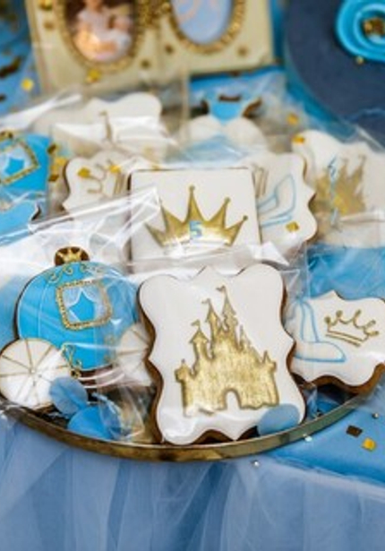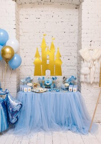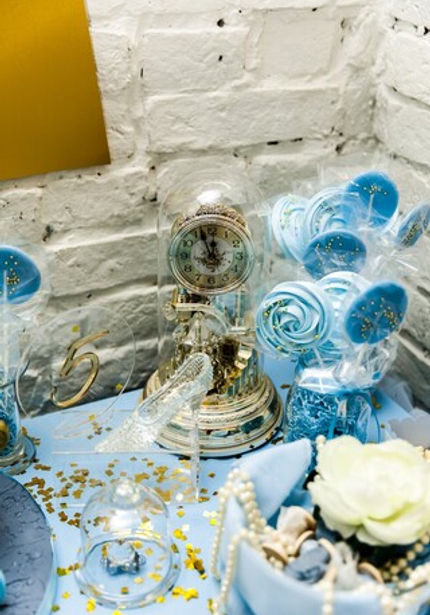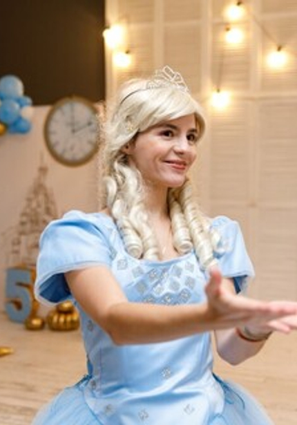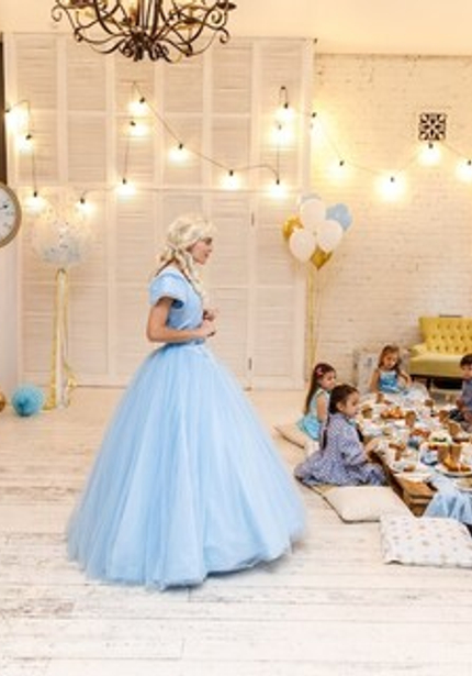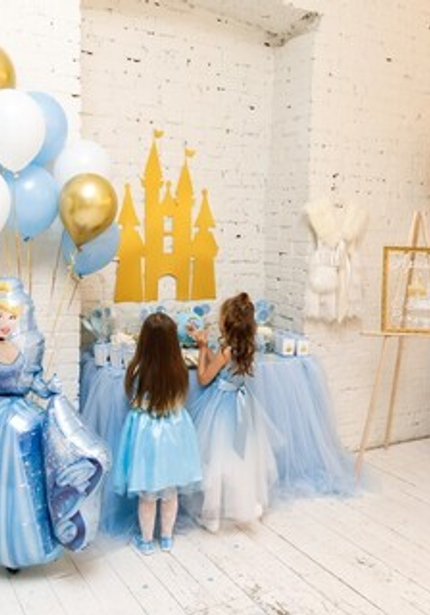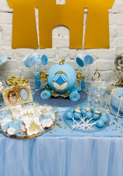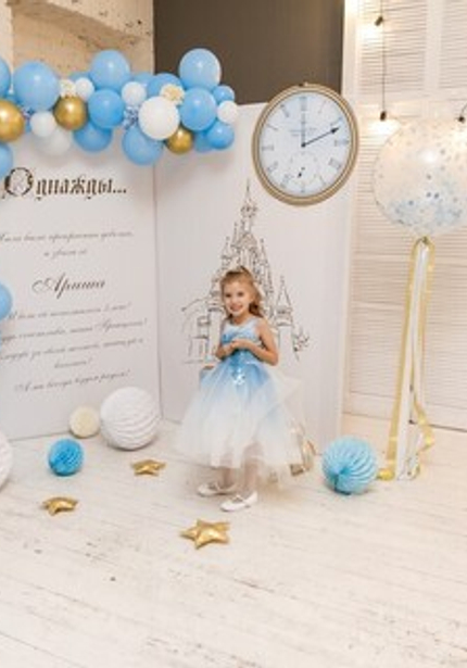 У нашей именинницы воплотилась мечта хотя бы на денек стать настоящей принцессой: Женя оформила для нее чудесный замок, кондитер Ксения приготовила угощения, например, торт в виде кареты, а в гости пришли Золушка и ее принц!
